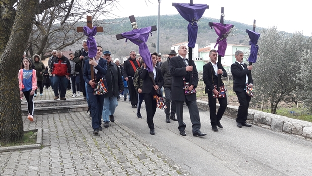 Mnoštvo vjernika kao i svake godine sudjelovalo je u procesiji križnog puta na Veliki petak. Procesija je krenula iz župne crkve Gospe od Karmela, na Ljubičića gomili sastala sa procesijom koja je krenula iz crkve Sv. Ivana iz Sebišine, a potom se kod „Kriške stine“ sastala sa procesijom koja je krenula iz crkva Sv. Nikole iz Podosoja, a potom se uputila u župnu crkvu Gospe od Karmela, gdje su nastavljeni obredi Velikog petka.